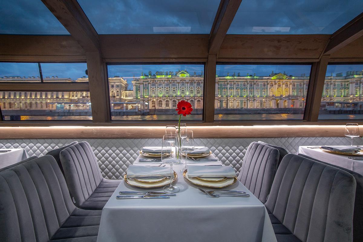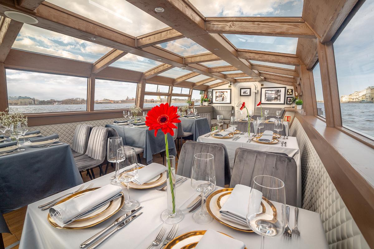 Панорамные окна и стеклянная крыша открывают завораживающий вид на Северную столицу, которым особенно приятно любоваться ночью. Чтобы вы чувствовали себя комфортно в любое время суток, на борту установлен климат-контроль.