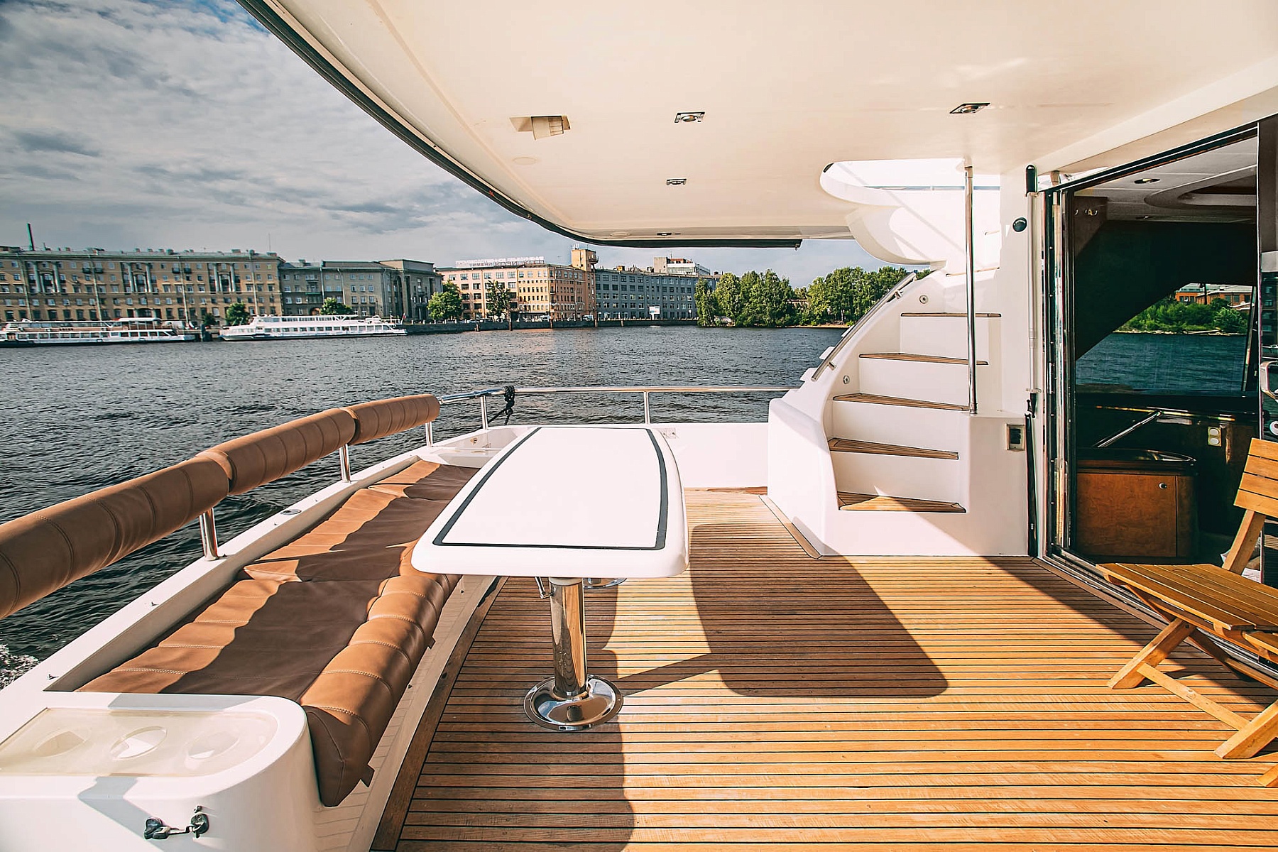 Elegance 65 — это идеальное место для любого важного события. Романтическое свидание с видом на закат, деловая встреча в окружении роскоши, яркий день рождения или фотосессия с панорамным видом на Санкт-Петербург — каждый момент на борту станет незабываемым. Для вашего комфорта на борту оборудованы три каюты на шесть спальных мест, что позволит насладиться ночным отдыхом прямо на яхте.