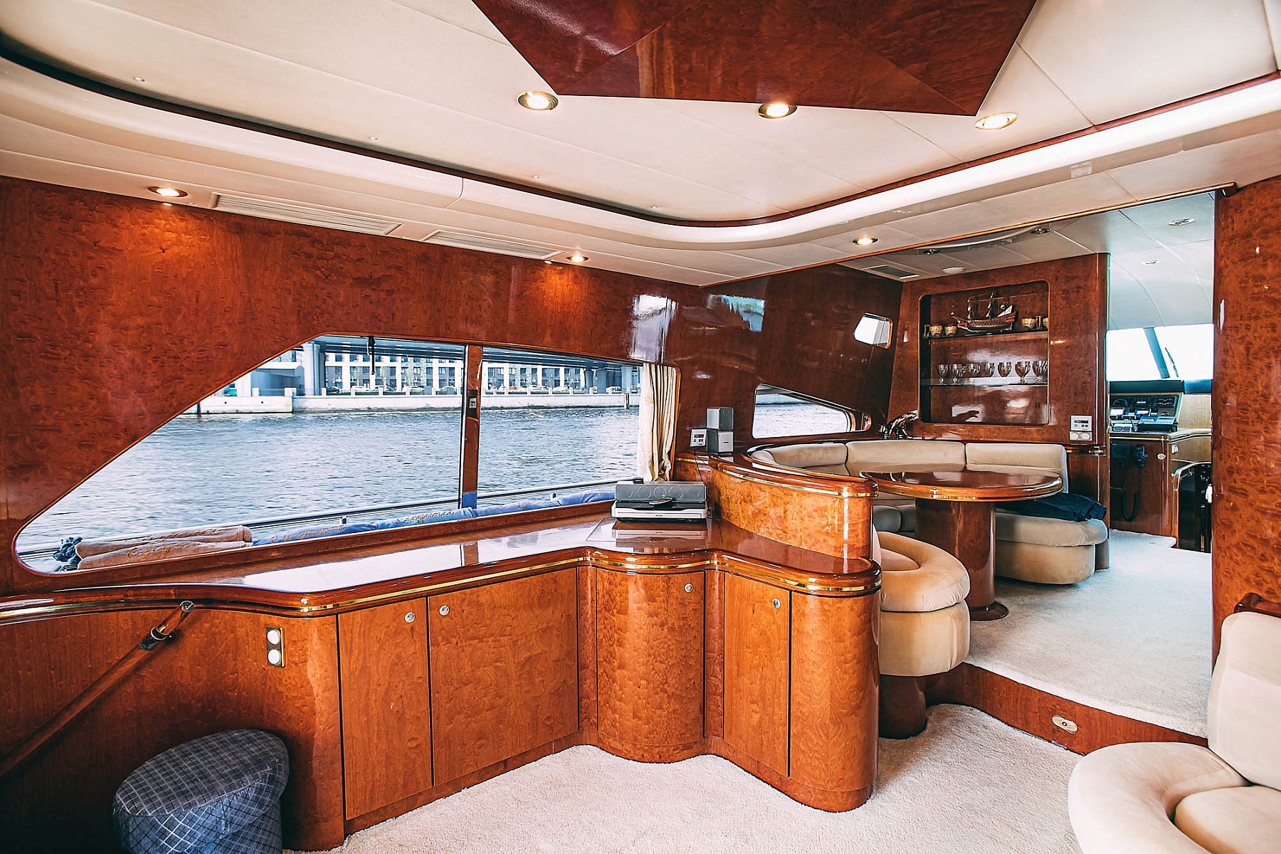 Каждая деталь на борту пропитана изысканностью: отделка из благородного дерева, просторный флайбридж и уютный салон с мягкими диванами и стильными столиками. Для вашего удобства на борту предусмотрена кухня с современной техникой, качественная аудиосистема с Bluetooth, а также два гальюна и уютные теплые пледы для прохладных вечеров.