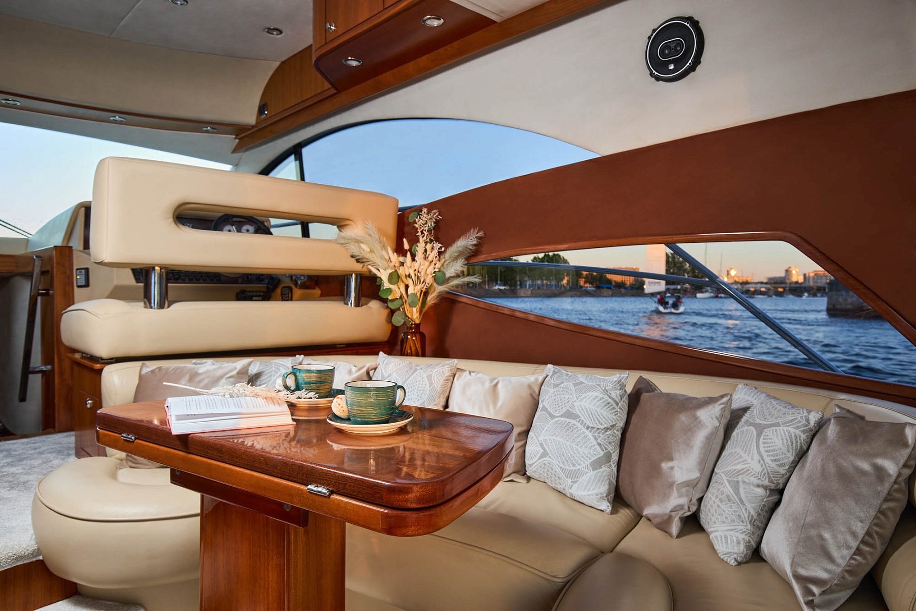 Яхта идеально подходит для проведения мероприятий: от романтического свидания или предложения руки и сердца до шумных праздников, таких как день рождения, девичник или мальчишник. Уютные пледы и телевизор в салоне сделают водную прогулку особенно комфортной.