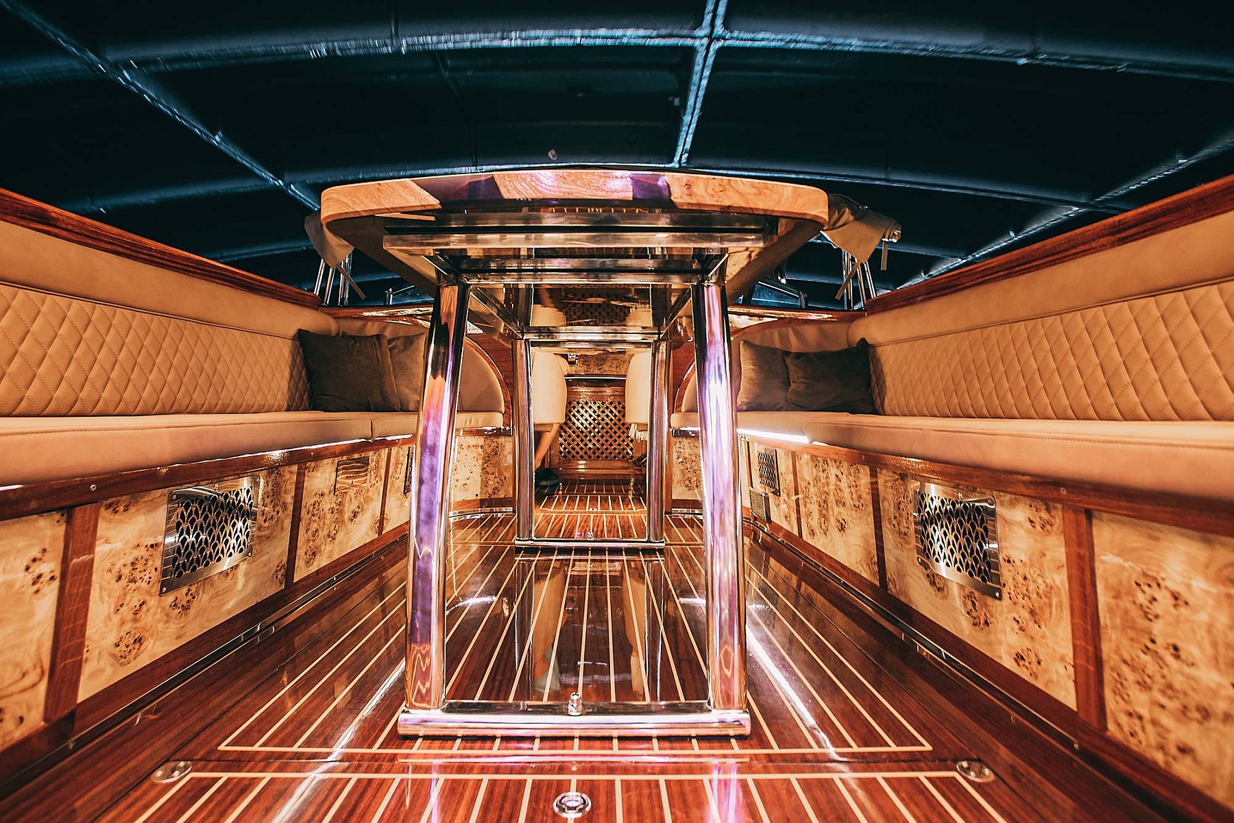 Добро пожаловать на борт катера «Модена», где каждый момент превращается в незабываемое впечатление! С дизайнерским интерьером и кормой из благородного дерева, этот стильный катер сочетает в себе комфорт и элегантность. Открытая площадка и крытая каюта обеспечивают возможность наслаждаться окружающими пейзажами в любую погоду, а теплые пледы и одеяла обеспечат уют в прохладные вечера.