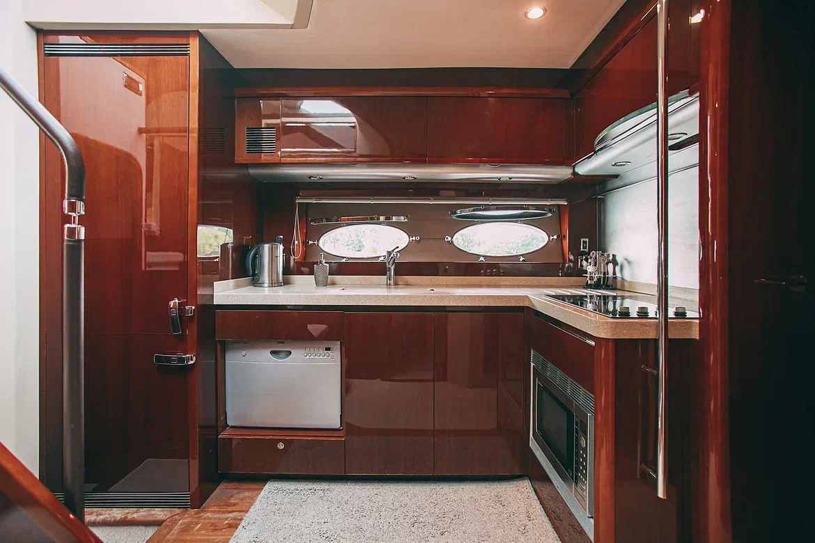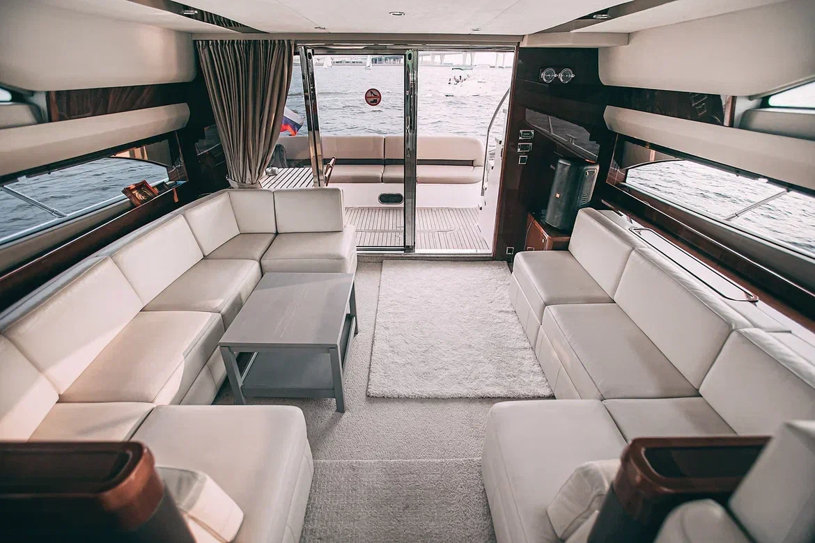 Яхта Princess 62 Nord Star — это наша новинка в сфере премиального отдыха и элегантности. В её интерьере сочетаются роскошь и уют: дорогая отделка из благородного дерева и панорамные окна создают неповторимую атмосферу. Просторный крытый салон с лаунж-зоной для гостей станет вашим личным уголком для отдыха.