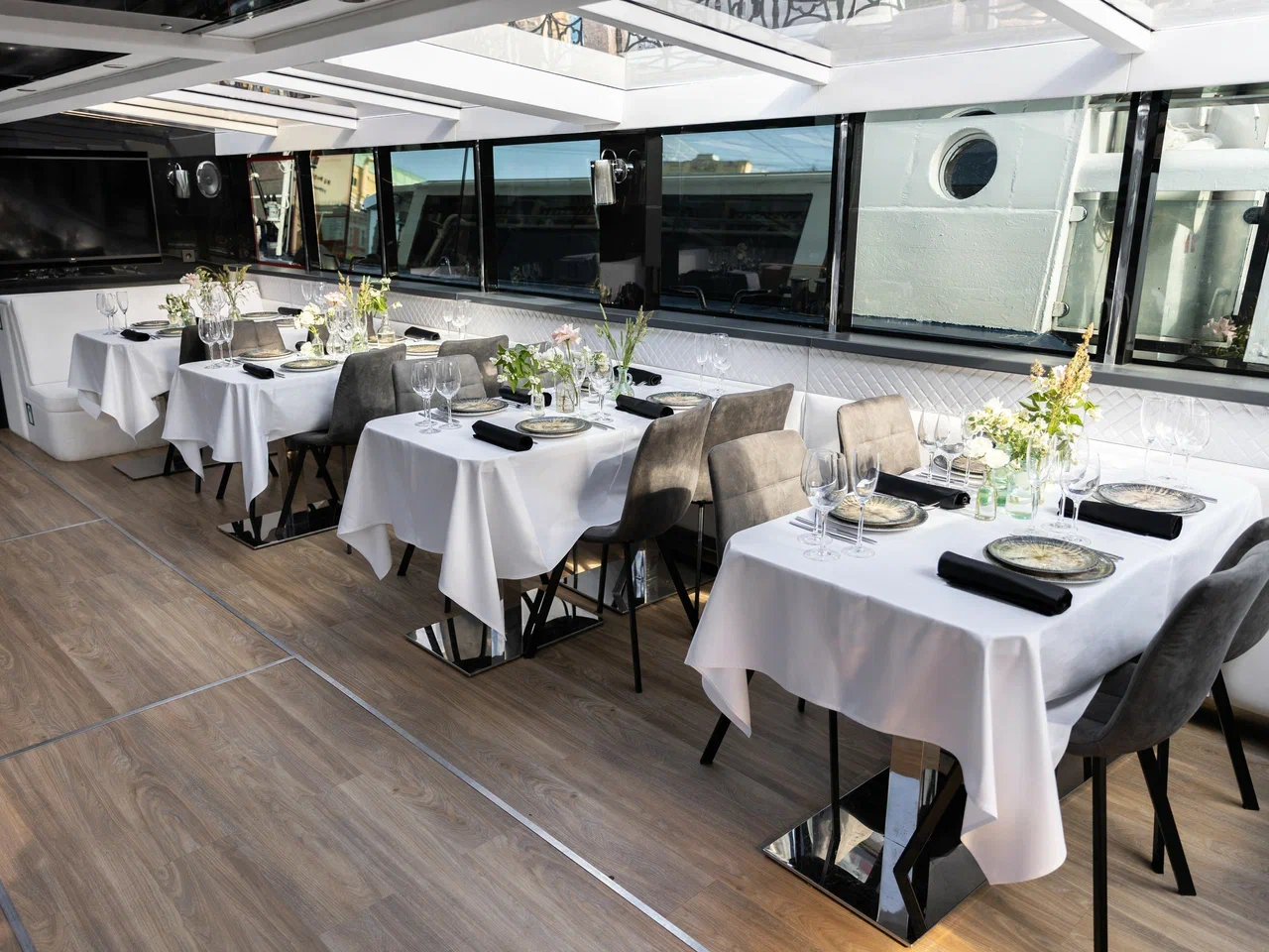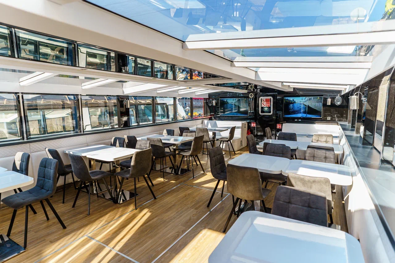 Теплоход премиум-класса «Нота» с одной палубой — это превосходное место для организации запоминающихся праздничных событий на воде. Мы создали атмосферу, которая позволит гостям полностью расслабиться и насладиться увлекательной водной экскурсией по Санкт-Петербургу.